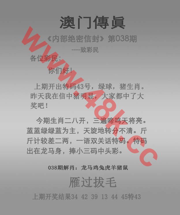 | 037期: ⑥肖 | 鸡羊马狗猴虎 | 猪43中 |